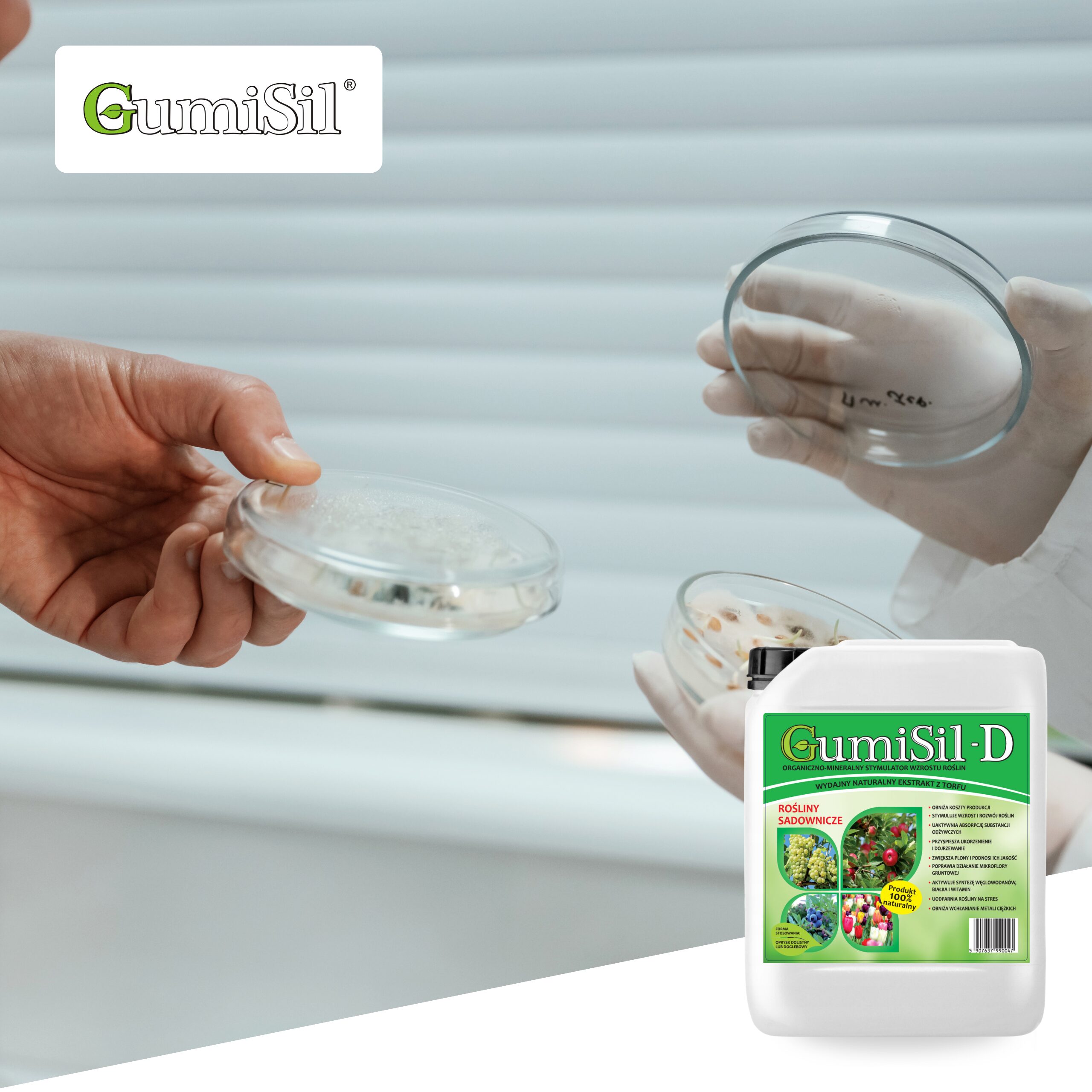 GumiSil-D to organiczno-mineralny, ekologiczny stymulator wzrostu przeznaczony do roślin sadowniczych, jagodowych, kwiatów ozdobnych oraz ziół. Doskonale sprawdza się m.in. w uprawie malin, truskawek, borówek, winorośli, drzew owocowych, a także roślin ozdobnych ogrodowych i domowych. Preparat bazuje wyłącznie na naturalnych składnikach aktywnych, które wspierają rozwój roślin od fazy ukorzeniania aż po owocowanie i kwitnienie.