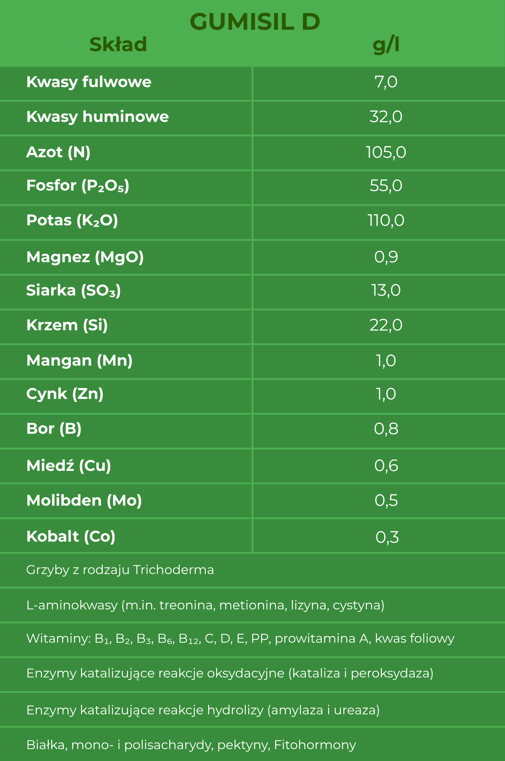 GumiSil-D to biostymulator oparty na naturalnych składnikach aktywnych, takich jak aminokwasy i mikroorganizmy. Jego działanie obejmuje: