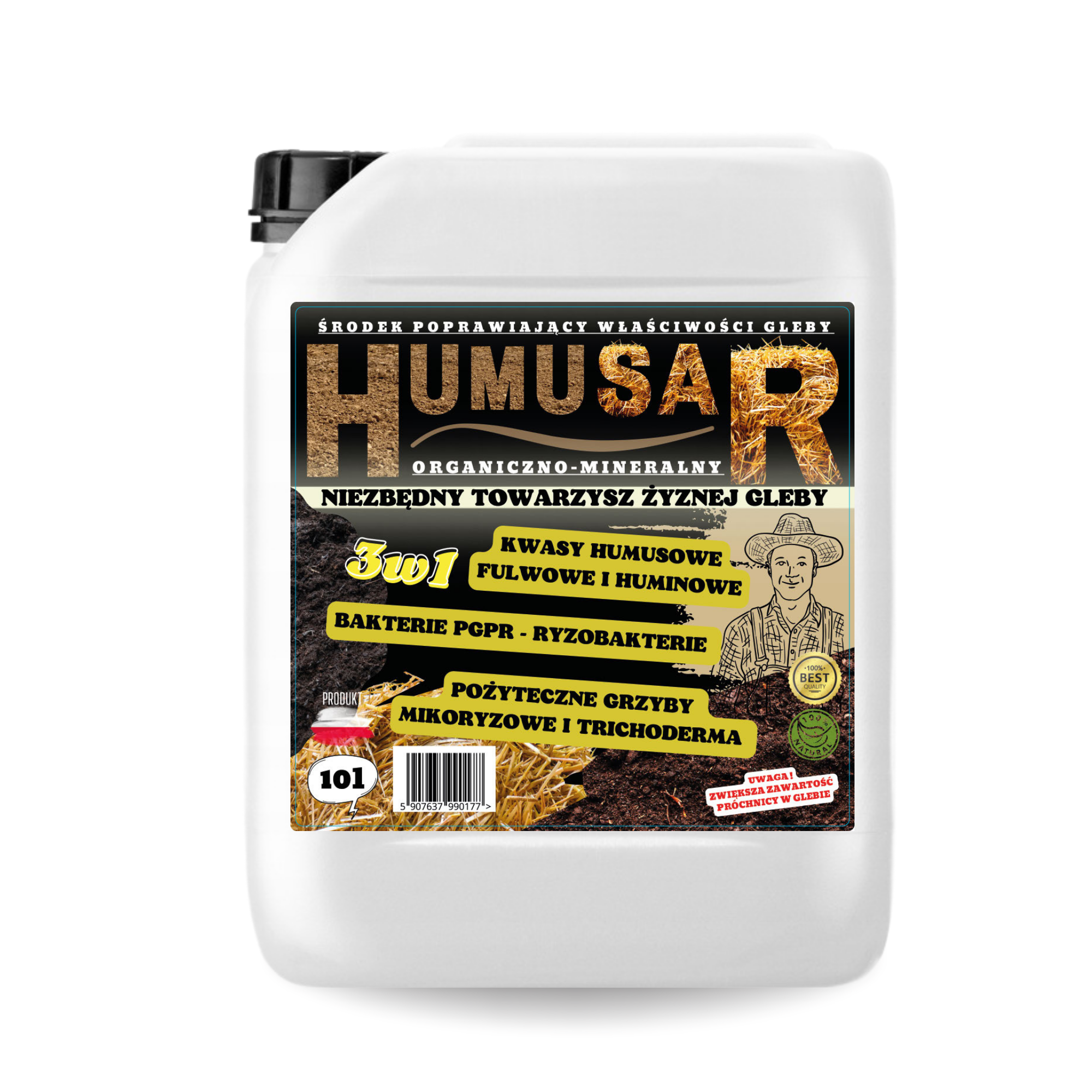 HUMUSAR 10L to naturalny, płynny polepszacz glebowy przeznaczony do przyspieszania rozkładu słomy, ścierni i masy organicznej, poprawy żyzności gleby oraz zwiększania zawartości próchnicy. Produkt idealny do upraw polowych, warzywniczych, sadowniczych oraz ekologicznych.