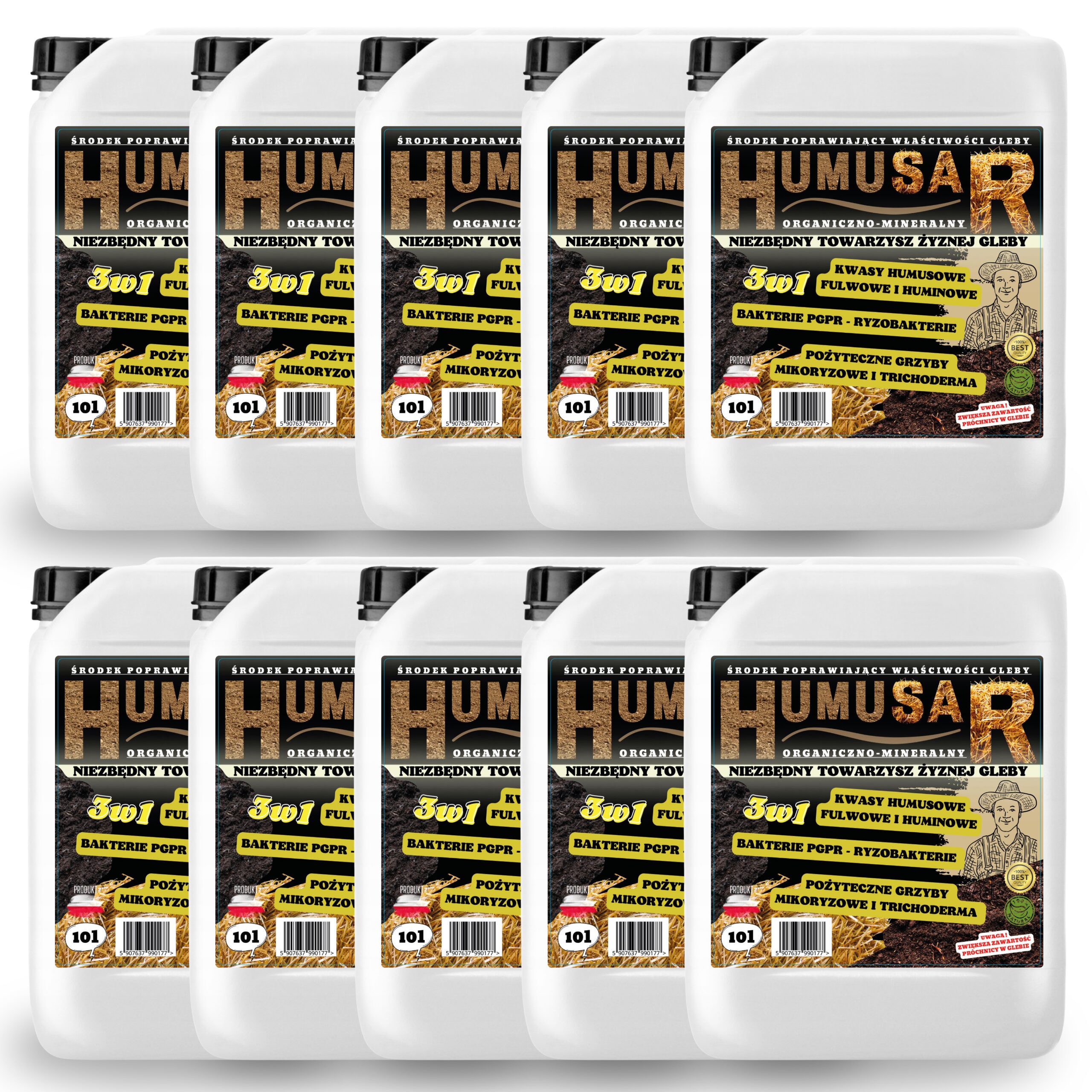 HUMUSAR 10L to naturalny, płynny polepszacz glebowy przeznaczony do przyspieszania rozkładu słomy, ścierni i masy organicznej, poprawy żyzności gleby oraz zwiększania zawartości próchnicy. Produkt idealny do upraw polowych, warzywniczych, sadowniczych oraz ekologicznych.